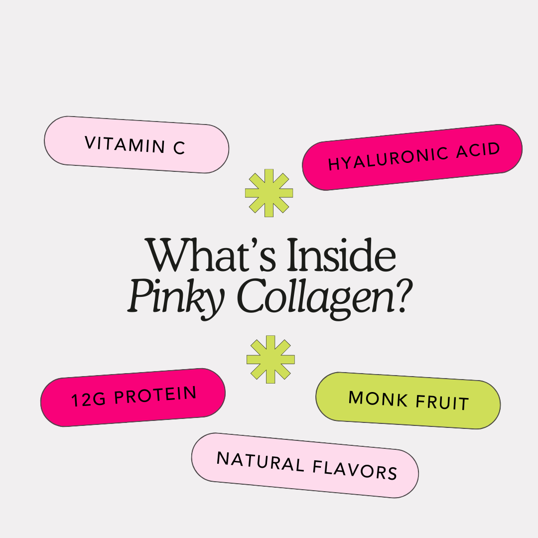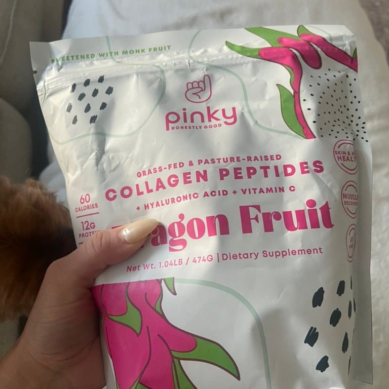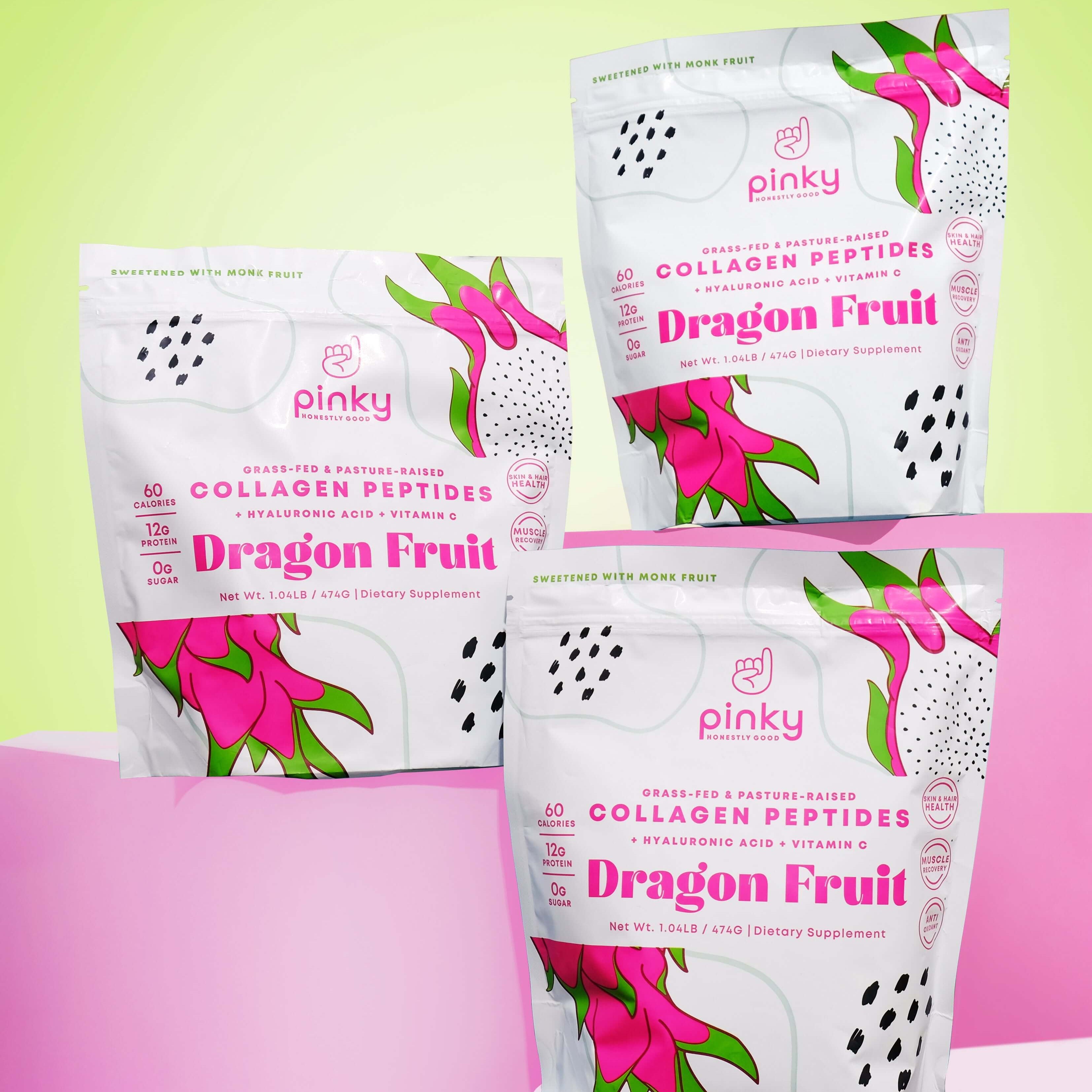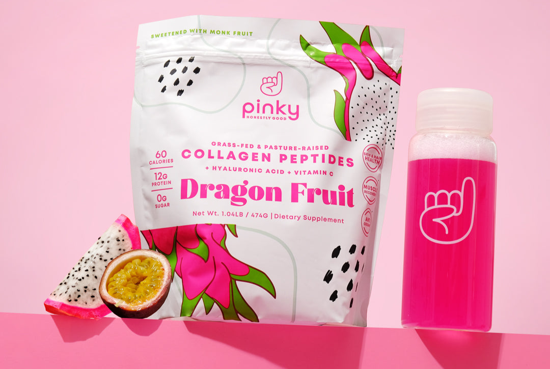@pinky.collagen Dragon Fruit-Flavored Collagen Peptides. Supports Skin, Hair, and Gut Health.